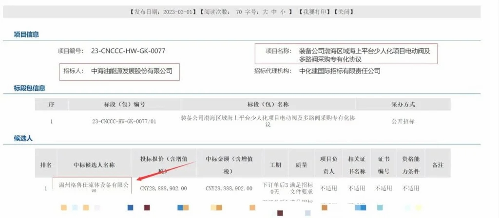Wenzhou Growth Fluid Equipment (GFE) is thrilled to announce its inclusion in CNOOC’s list of suppliers and the acquisition of manufacturing rights for CNOOC Energy Development’s “Electric Valve and Multi-way Valve Retrofit Project for the Less-manned Platform in the Bohai Sea Area.” This significant achievement marks a momentous milestone for GFE as its product range expands to offshore projects and serves as a tremendous recognition of its corrosion-resistant, high-pressure control valves.