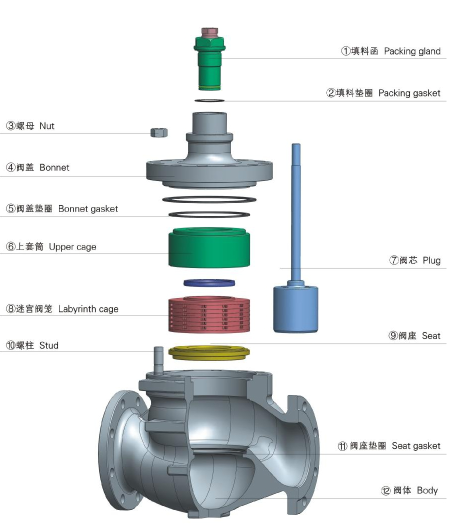 The 10M series of balanced maze regulating valves is designed with a mazevalve cage combined with a balanced valve core. The maze sleeve consists of a cylindrical disc with a diameter of the maze with a variety of coaxial surfaces. Depending on the media process parameters, the design of different curved diameters and the overlapping layer formation valve cages are designed. The valve cage divides the total flow tract into many small roundabouts and even step-shaped flow runs. The pressure of the circulation area gradually reduces the pressure of the fluid to prevent the occurrence of offlash and vacation and extend the service life of the inside of the valve. The tightly coordinated coordination of the balanced sleeve valve core, the valvecore, and the valve seat ensures an extremely low leak. Such parts in this valve are suitable for various operating conditions that are susceptible to blocking flows and causing air erosion.
